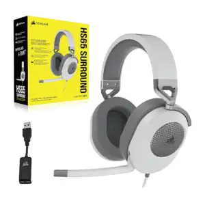CORSAIR HS65 SURROUND Multiplatform Wired Gaming Headset – Dolby Atmos – SonarWorks SoundID – iCUE Compatible – PC, Mac, PS5, PS4, Xbox, Nintendo Switch, Mobile – White