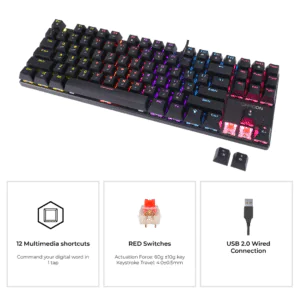 GAMEON KENORA Series GOMK87-RS 80% RGB Mechanical Wired Gaming Keyboard, Red Switch – English/Arabic