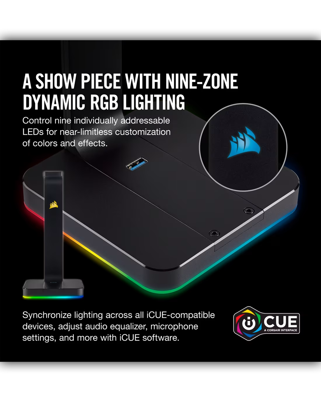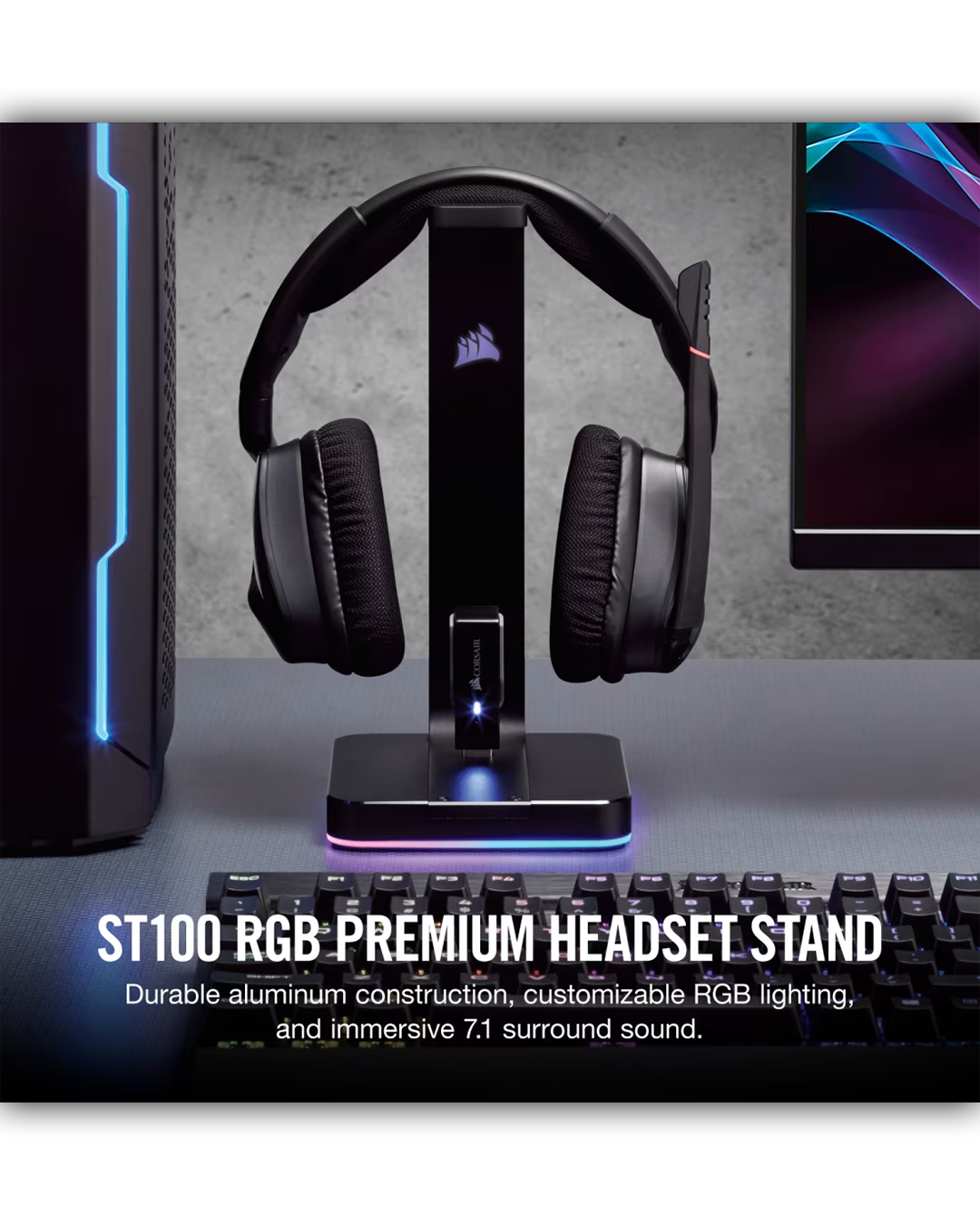 Corsair ST100 RGB Premium Headset Stand with 7.1 Surround Sound, USB DAC, iCUE RGB Lighting