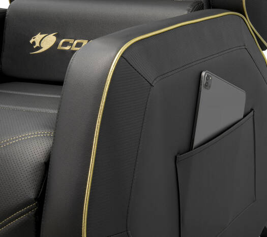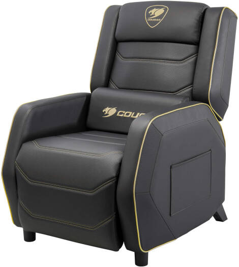Cougar Sofa Ranger S Royal Gaming Sofa, Side Storage Pocket, Breathable PVC Leather, Headrest Lumbar Pillow, Adjustable Design, Up to 160Kg Weight Capacity, Black/Gold