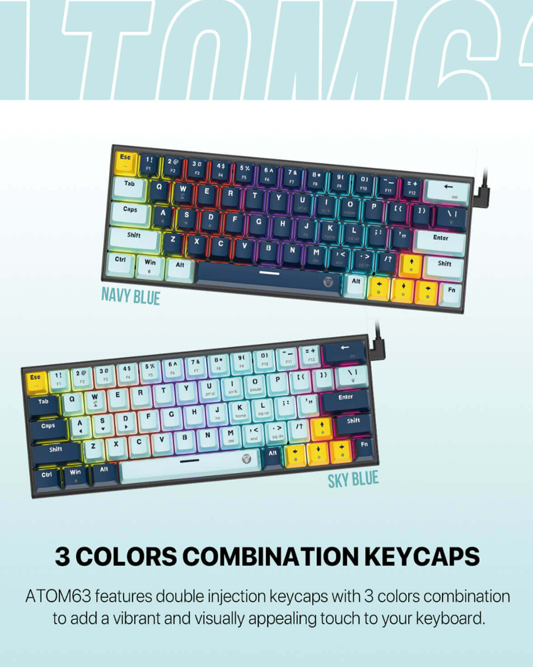 FANTECH MK874 V2 ATOM 63 MIZU EDITION – 63 Keys RGB Mechanical Keyboard | Wired Only | 17 Lighting Modes