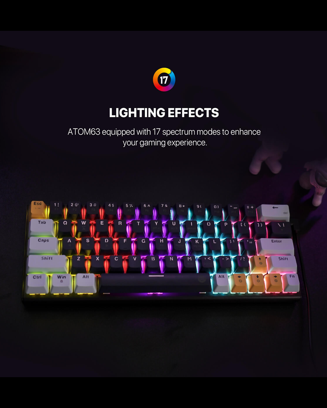 FANTECH MK874 V2 ATOM 63 MIZU EDITION – 63 Keys RGB Mechanical Keyboard | Wired Only | 17 Lighting Modes - Image 7