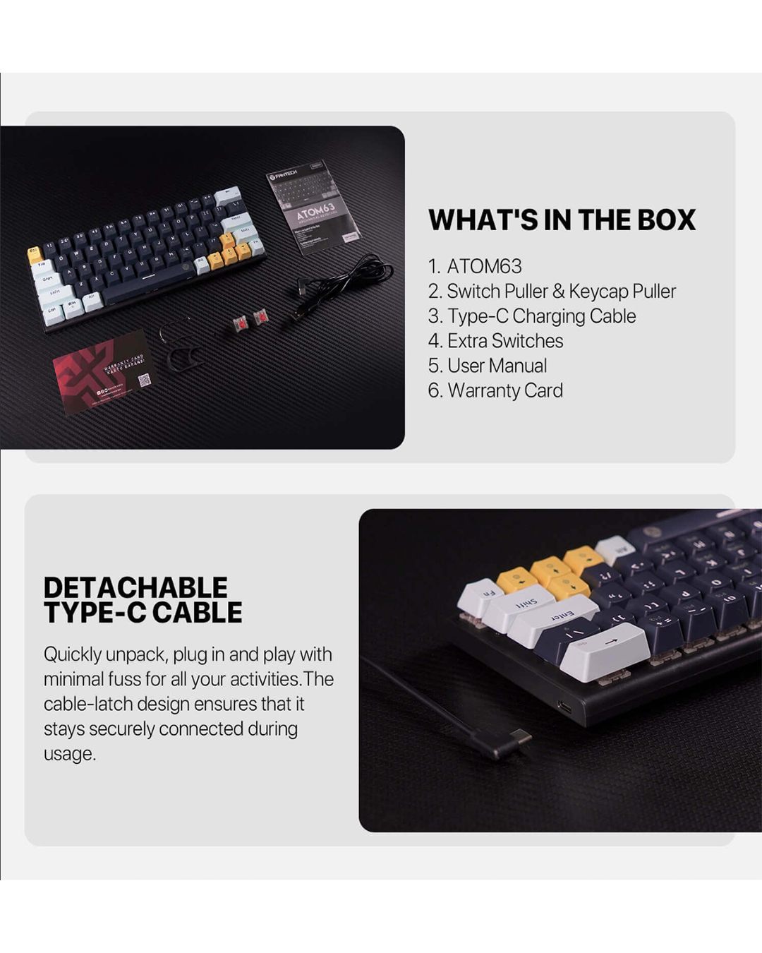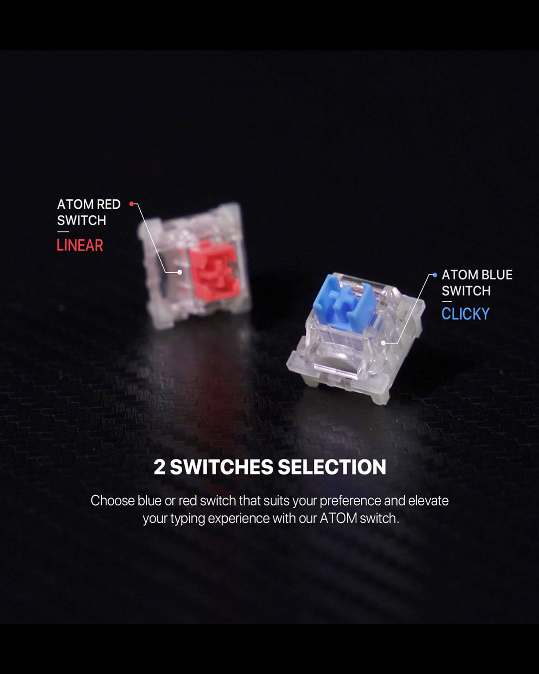 Built with a solid and durable frame, the MK874 V2 ATOM 63 MIZU Edition is made to withstand long gaming sessions and daily wear. Its unique MIZU Edition color theme adds a stylish and modern touch, making it stand out in any gaming or workstation setup.