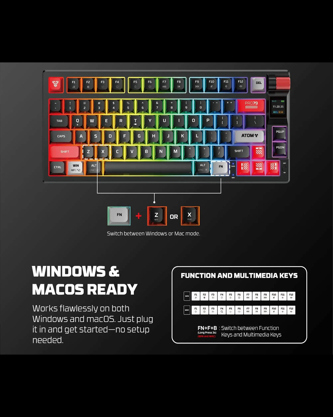 FANTECH MK917 ATOM PRO79 – 79 Keys RGB Mechanical Keyboard | Red Switch | BT 5.0 | 2.4GHz Wireless | Wired | Smart Display | 2500mAh Battery