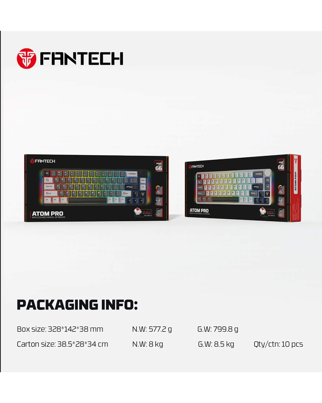 The Fantech MK919 Atom Pro is a compact 66-key mechanical gaming keyboard built for gamers and everyday users who want maximum performance in a minimal footprint. Designed to save desk space without sacrificing essential functionality, the Atom Pro delivers fast response, smooth typing, and flexible connectivity in a clean, modern design that fits perfectly into any gaming or productivity setup.