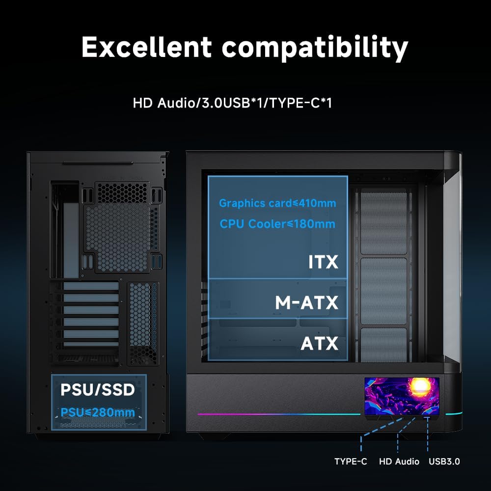 Jungle Leopard AC-02 Digital ATX PC Gaming Computer Case|5.5 Inch Integrated LCD Screen& App|Mid Tower Full View Dual Reinforced Glass Panel|Removable Side Panels|for Micro-ATX ITX - Image 6