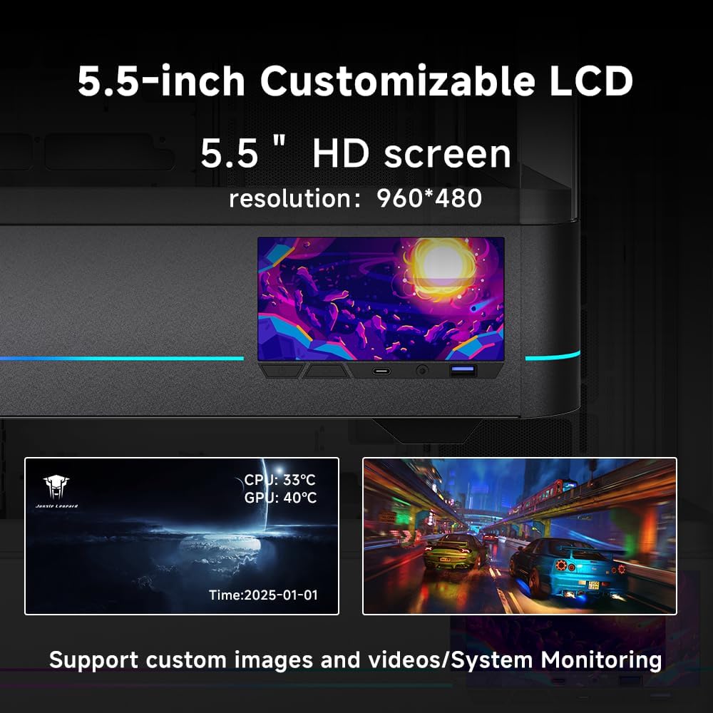 Jungle Leopard AC-02 Digital ATX PC Gaming Computer Case|5.5 Inch Integrated LCD Screen& App|Mid Tower Full View Dual Reinforced Glass Panel|Removable Side Panels|for Micro-ATX ITX - Image 5