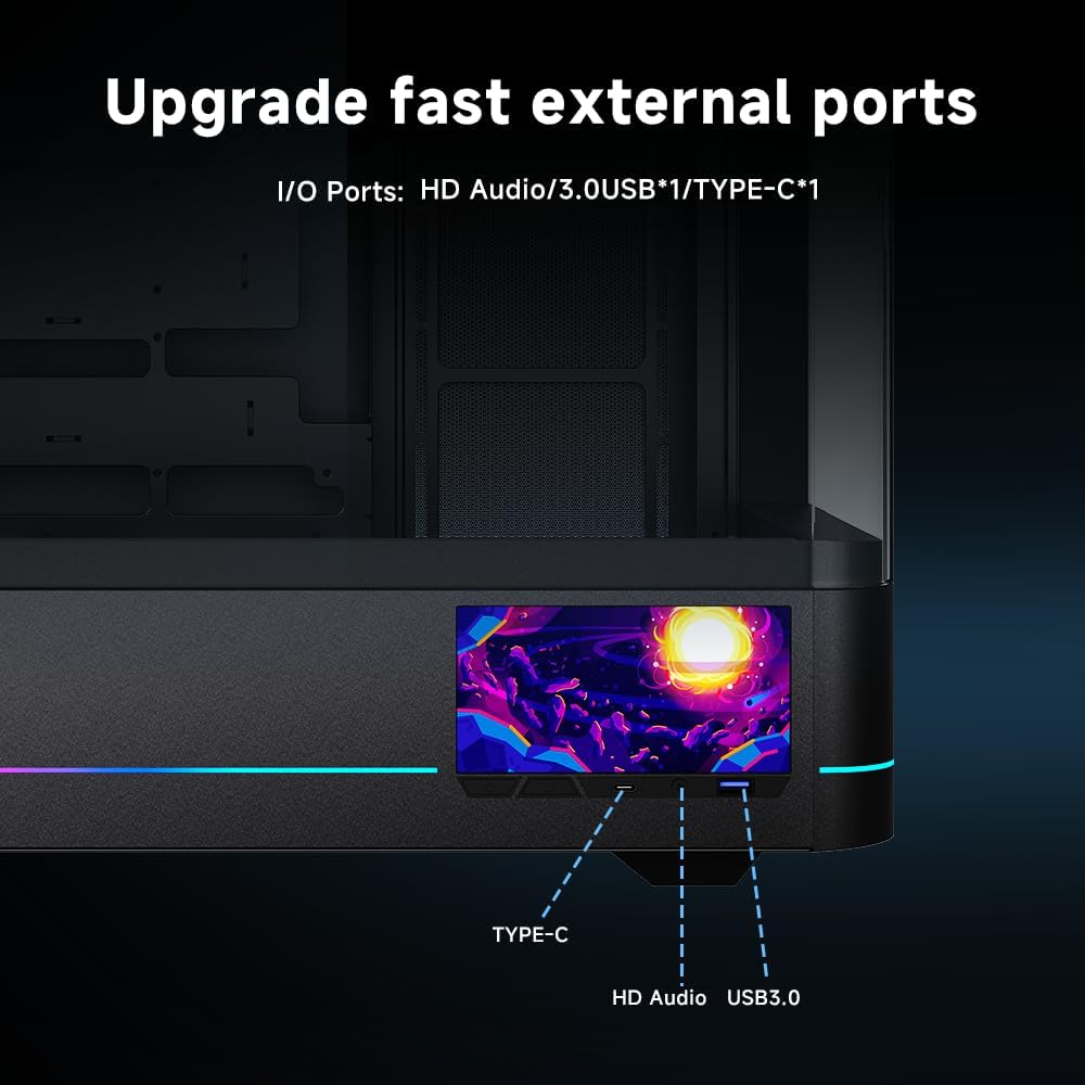 Jungle Leopard AC-02 Digital ATX PC Gaming Computer Case|5.5 Inch Integrated LCD Screen& App|Mid Tower Full View Dual Reinforced Glass Panel|Removable Side Panels|for Micro-ATX ITX - Image 7