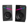 With a modern gaming-inspired design, these speakers add a stylish touch to your desktop setup. Their compact size makes them perfect for limited desk space while still delivering powerful audio output.