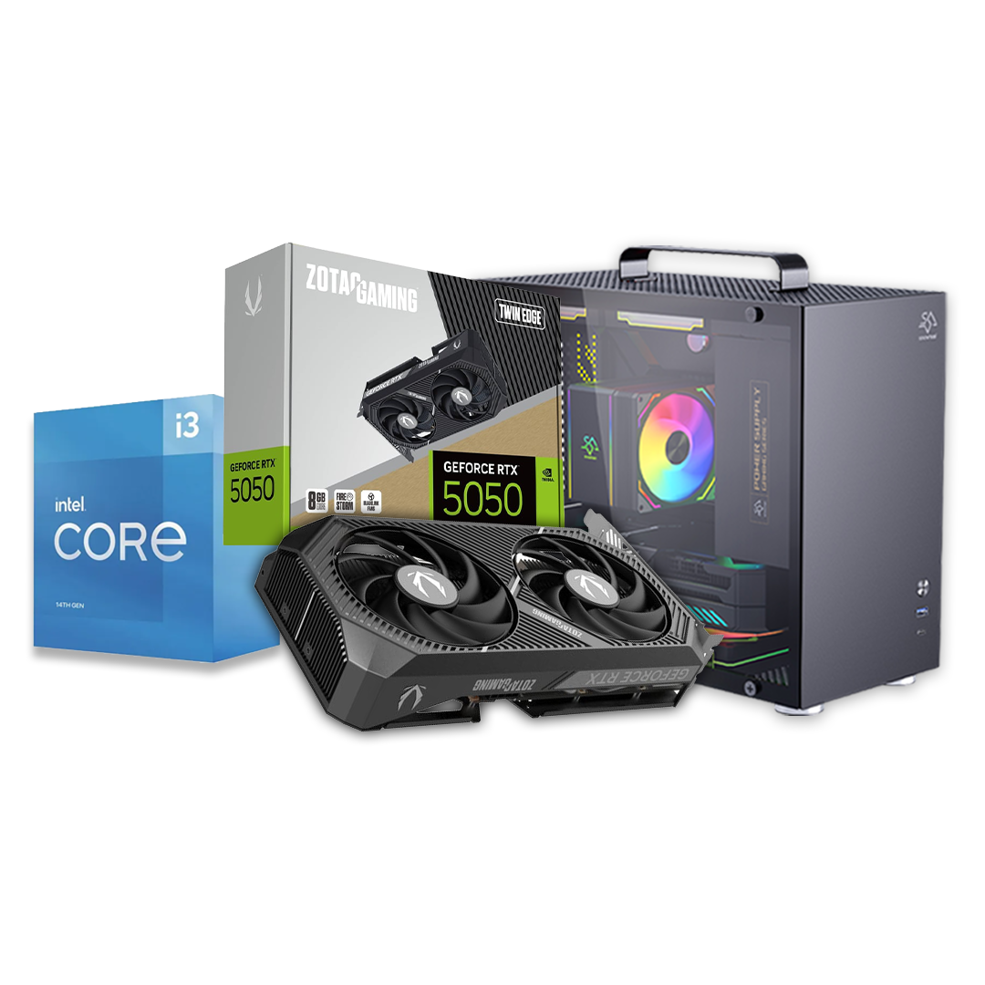 HomePre build PCIntelZOTAC GAMING GeForce RTX 5050 Twin Edge 8GB | Intel Core i3-14100F | 16GB DDR4 | 500GB SSD | 700W Gaming PC